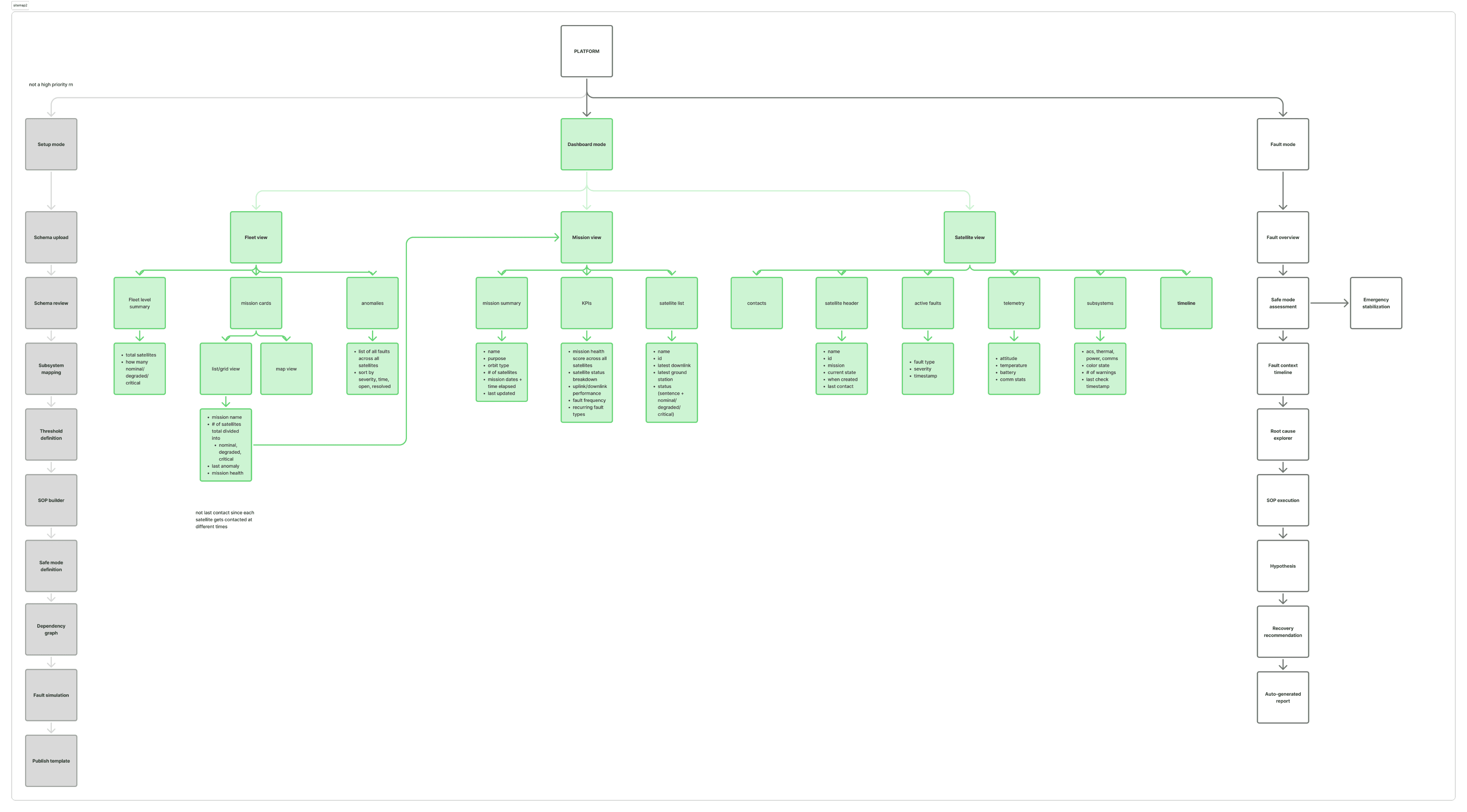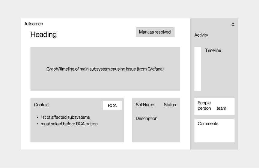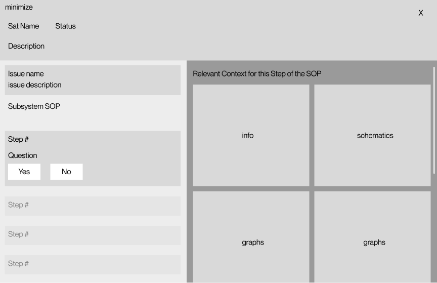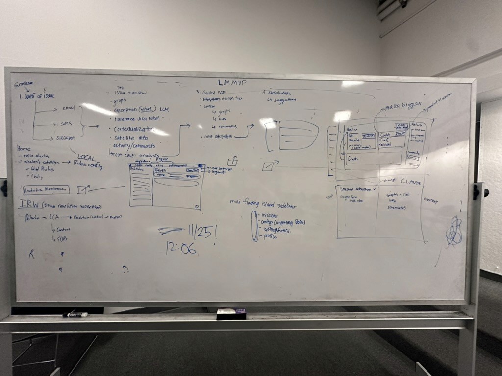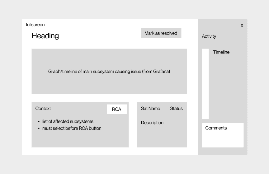 The final solution is a web-based satellite operations copilot that sits on top of existing ground systems, giving operators a single workspace for alerts, anomalies, RCA, and documentation. The experience is designed for 2 AM incident moments: operators land in a focused issue view, see context from multiple subsystems, move through guided checklists, and log what they tried so itโs reusable the next time.