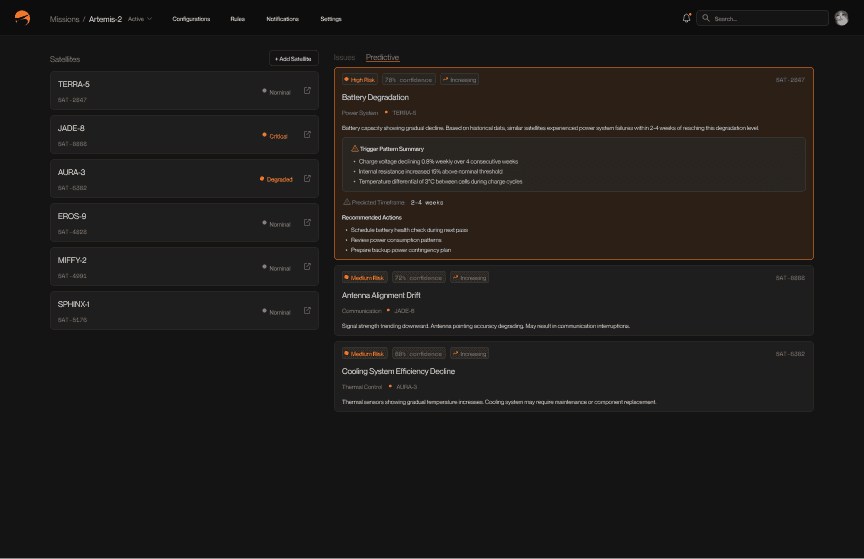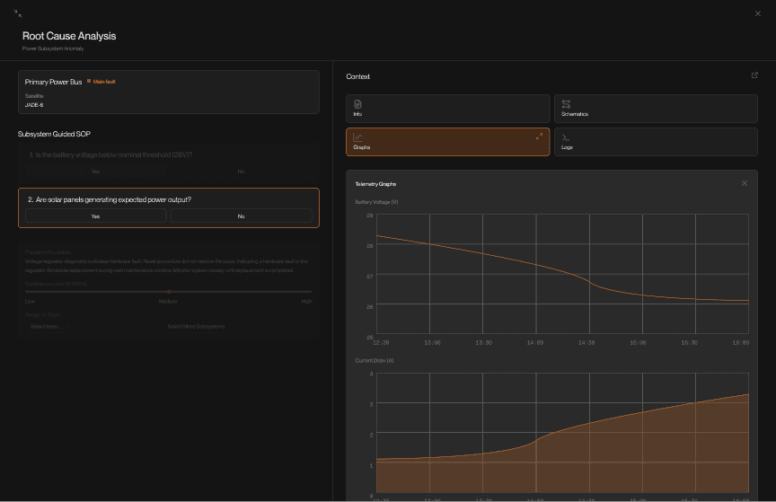 Satellite operators often spend days to weeks manually debugging issues across fragmented dashboards and scattered documentation, leading to prolonged outages, lost revenue, and making it difficult for growing satellite companies to maintain fleet health and scale operations without continuously adding more ops headcount.