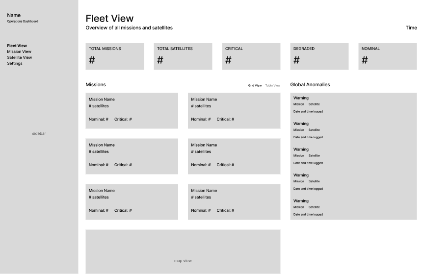 Defined the information architecture linking alerts, anomalies, satellites, and SOPs into a single model